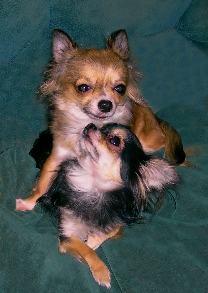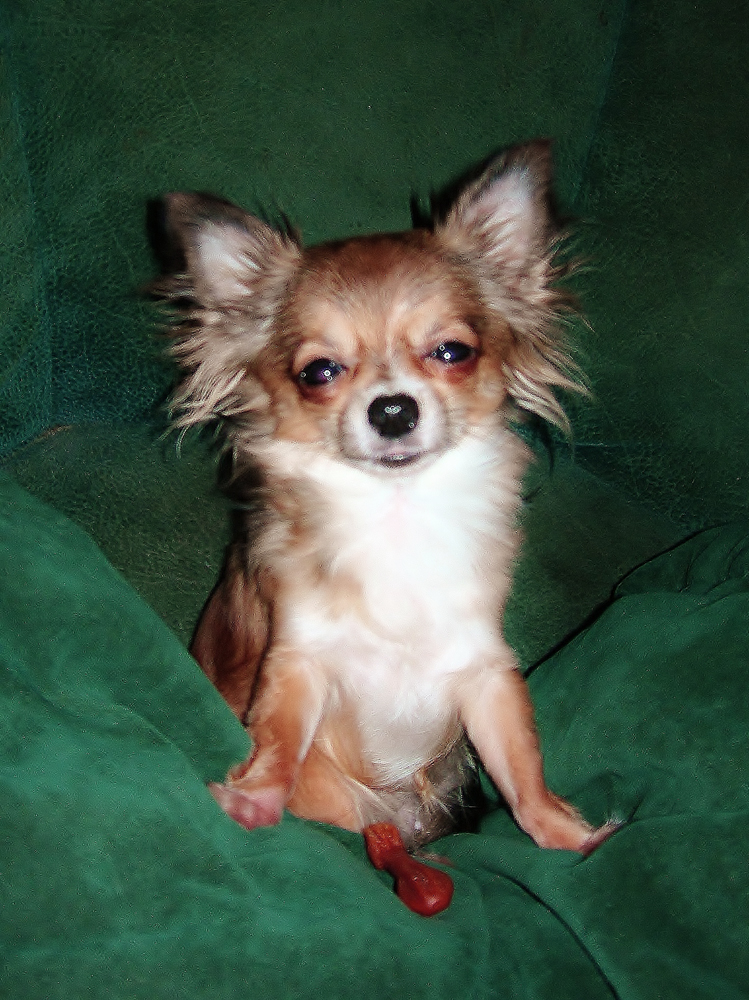 Здравствуйте дорогие форумчане! Вот уже полгода, как я поселилась на этом форуме, многих из вас я знаю, читаю ваши истории, обожаю рассматривать фото, радуюсь и плачу вместе с вами, обожаю ваших питомцев и восхищаюсь их хозяевами. Моему появлению здесь я обязана маленькой чишке, знакомой некоторым из вас по теме в разделе объявлений, там она звалась Микроб. Эту замечательную собу я присмотрела в качестве подружки для моей малышки Мышки. История моего знакомства с чихами началась в далёком 1999 году. К тому времени в нашей семье жил красавец шоколадный доберман. Его появлению предшествовали долгие уговоры. Мой сынуля - единственный ребёнок в семье, нуждался в общении, а папа выставлял очень строгие требования к собаке. Маленькая собака не рассматривалась вообще. В итоге мне предоставили список: доберман, веймарская легавая и выжла. Я нашла только добермана. Это был чудный лопоухий щенок, который сразу решил, что мальчик в доме это существо для игр и только. Рос он очень быстро, и мой ребёнок с удивлением обнаружил, что собака считает его своей игрушкой. Он тогда ходил в детский сад, читать не умел, а потому принёс мне атлас собак и попросил показать ему самую маленькую собачку. Я открыла страничку с чихами и показала ему какими они бывают. Ребёнок долго разглядывал картинки и изрёк: хочу такую, но чтобы она была лохматая, а цвета может быть любого. Мне тогда и в голову не пришло, что этот разговор будет иметь продолжение, и в итоге очень изменит мою жизнь. Но, как говорится человек предполагает... Спустя год я поехала на Птичку за кормом для собаки и оказалась в рядах, где продают щенков. Это сейчас я понимаю, как рисковала, но тогда события развивались помимо моей воли. Я просто спросила: -это чих? Мне ответили, вы что не видите, это той, а вот это - чих. Признаться большой разницы я не увидела, а когда мне озвучили цену, просто повернулась и ушла. Корм я так и не купила, и ноги сами понесли меня к тому месту, где продавали чиха. Он сидел в прозрачном пластиковом аквариуме вместе со своим приятелем тоем, и был таким несчастным. Надо заметить, что был конец января!!! Дама, продающая щенков, беспардонно вытащила его и стала совать мне в руки. На моё замечание о том, что я не обладаю нужной суммой, она не прореагировала и щенок волшебным образом оказался у меня в руках. Не стоит говорить, что отдать его обратно просто не было сил. Дама сказала, что стоять на морозе ещё один день она не в силах и согласна на ту сумму, которая у меня есть. Всё, что происходило дальше вообще было как бы не со мной. Щенок сидел у меня за пазухой, в руках оказался домик, мисочка и ещё куча мелочей. В довершение ко всему, я не была уверена, что со всем этим добром меня не выставят из дома...