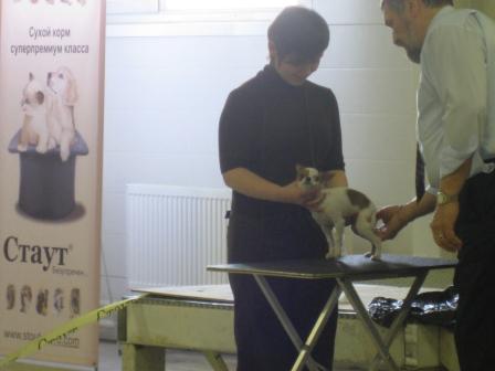 Выставлялись смешно,пока ехали на выставку в Лахту Цонга укачало и вытошнило пару раз.Соответственно был само очарование.Но,под судейством Седых Н.Б. мы все таки умудрились выступить очень хорошо.