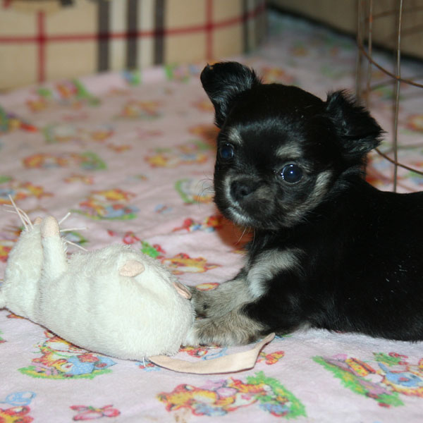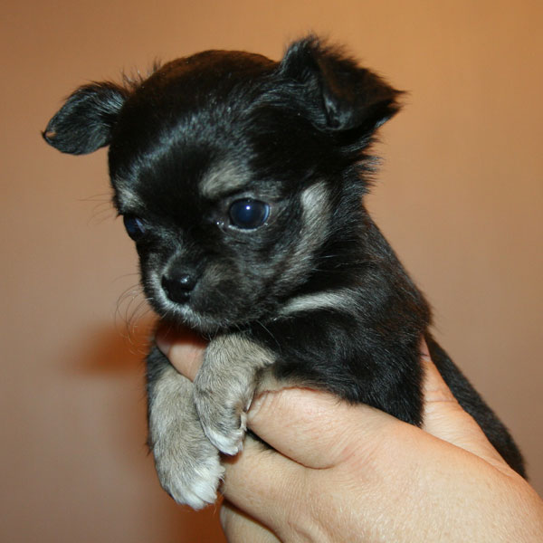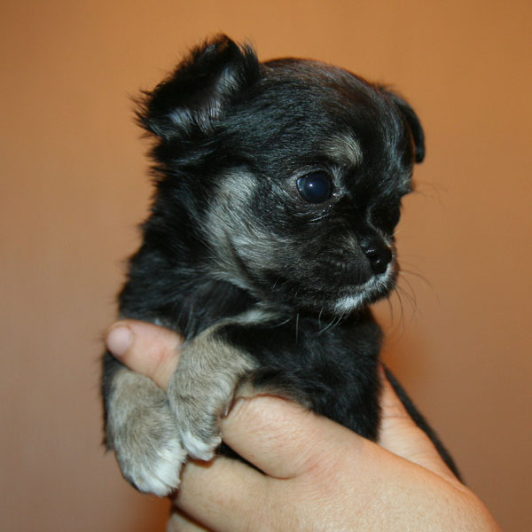 Мальчик дл/ш черно-подпалого окраса. Вес в 1,5 мес 600гр. зубки 6х6, прикус ножницы.