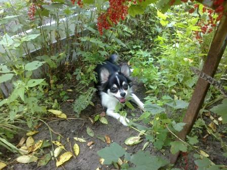 Здравствуйте - всем, всем. Мы подросли и окрепли. Отдыхаем летом на даче - очень жарко, спасаемся в кустах. Развили необычайную прыгучесть - и очень любим качаться на качелях