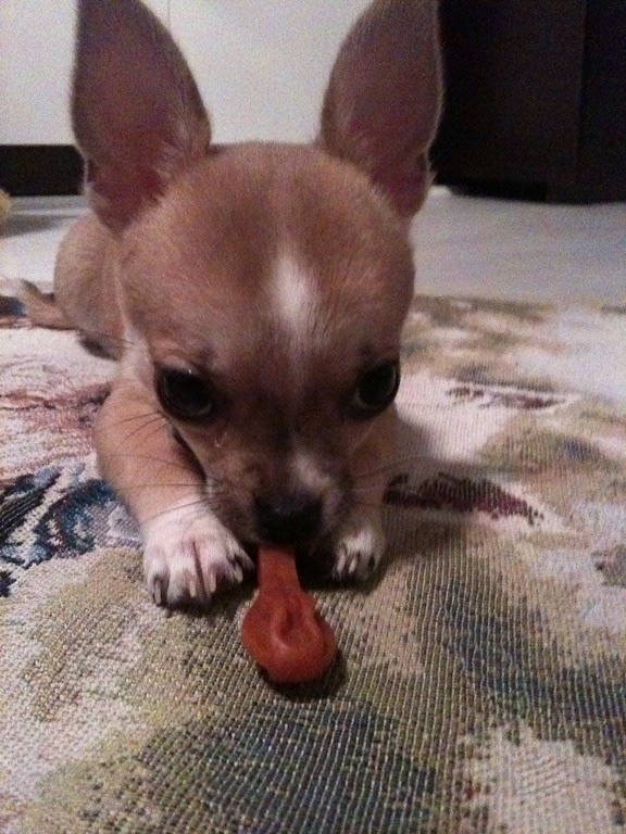Нам 2,5 мес, очень любим грызть щеточки! Не знаю как часто можно давать? За пол дня щеточку съедает! На пеленочку ходим через раз, причем как то интересно один день только какаем туда, другой только писаем) С кошкой пока нейтралитет(
