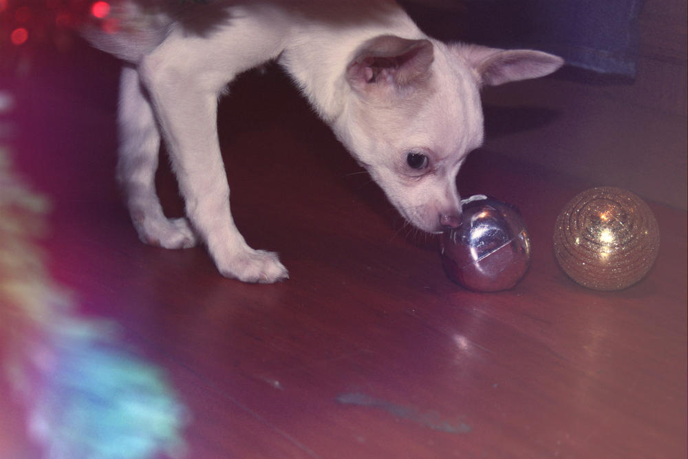 Елку вчера наряжали всей семьей, Стэфка радостная скакала, так ей эти шары приглянулись))))