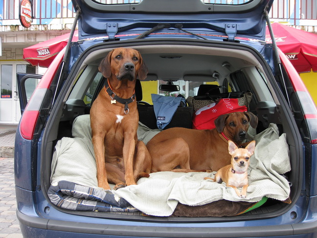 Вот, ездили в прошлом году во Францию на ЧМ, в машине. Много путешествовали. Все собаки с нами.