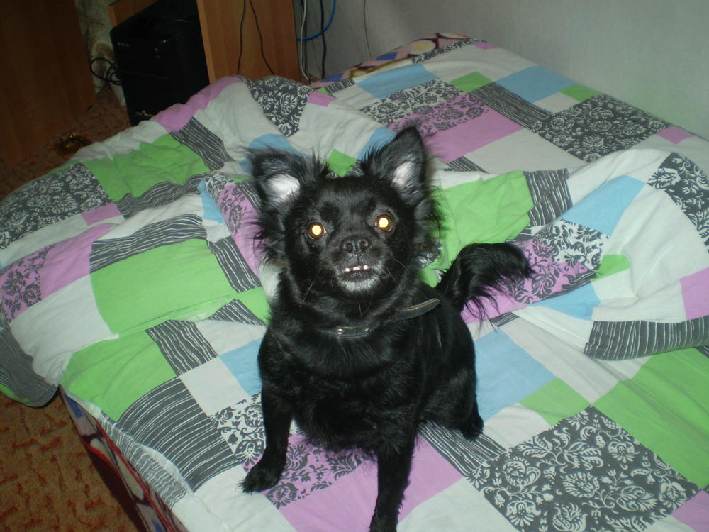 А теперь расскажу о нас подробнее.Моей Джуле сейчас 11 лет.В октябре 2001 года решила подарить собачку сынишке,поехала на птичку с мамой,приехали рано утром,на улице жутко холодно,на рынке никого толком нет и уже на выходе увидела двух женщин с коробками.У одной женщины была карликовая такса,а у второй в коробке сидело маленькое черненькое чудо.Мне сказали что это чихуахуа,тогда я только слышала о такой породе,что эти собачки маленькие,помещаются в сумочку.А этот щеночек мне показался крупненьким,на что мне продавец сказала:"да вы возьмите в руки".Взяла я этот комочек,а она как начала меня лизать в лицо,ну и все, мне было уже все равно какая порода,какая она вырастет,это был замечательный живой ребенок,только очень замерзший,всю дорогу домой сидела у меня за пазухой,и спала.Так появилась у нас Джульетта.