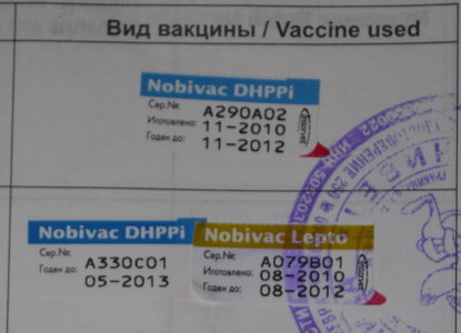 Всем Привет,мы делали прививку 14.12.2011 Nobivak DHPPi но без Lepto,2,5 месяца нам было-Это первая прививка.Вторую мы сделали 21.01.2012,врач вколол эту же и + Lepto. Сказал, что след после смены зубов,от бешенства + Lepto.Первую делали в клинике на ул. Станционной,1( Мытищи) может кто знает...а вторую в другой,т.к. наша была закрыта на ул.университетская "УНИВЕТ".оЧЕНЬ ПОДОЗРИТЕЛЬНАЯ,КАК МНЕ ПОКАЗАЛОСЬ,КАК-ТО ТАМ ГРЯЗНО ВСЕ,И Джульетта волновалась..но все же сделали...Когда домой пришла,паспорт посмотрела,наклеечки разные....это нормально?Просто переживаю,что в той клинике какую-то хрень вкололи Жульке....