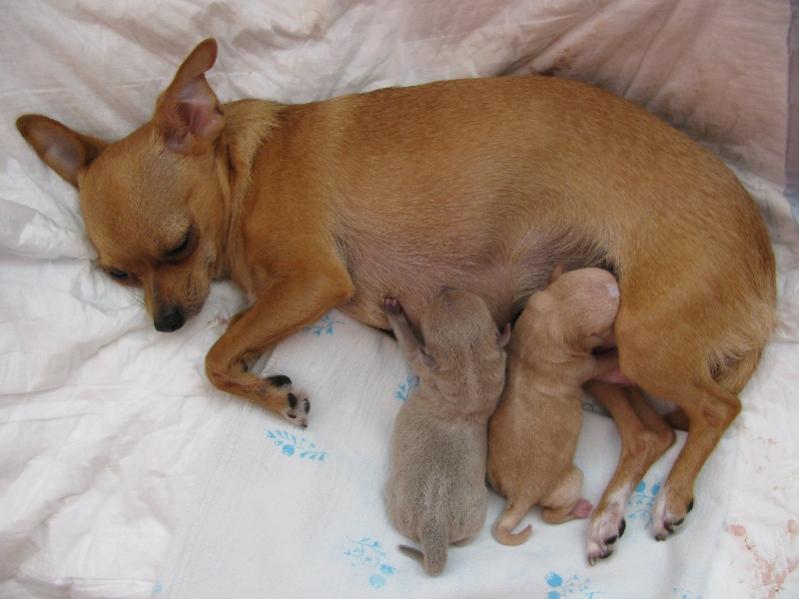 Щенки у Куклы были крупные для чиха и думала, что не пройдут. Пальцем проверяла .... узковаты родовые пути для таких слоников.
