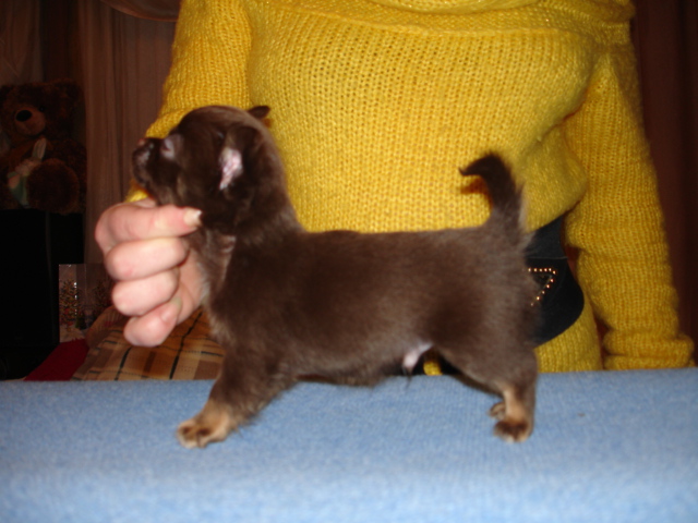 Яркий окрас и очень понравились пропорции, соотношение головы к корпусу,мне кажется, обещает вырасти очень складным и хорошо одетым, а может и дотянет до 1,8-2 кг.