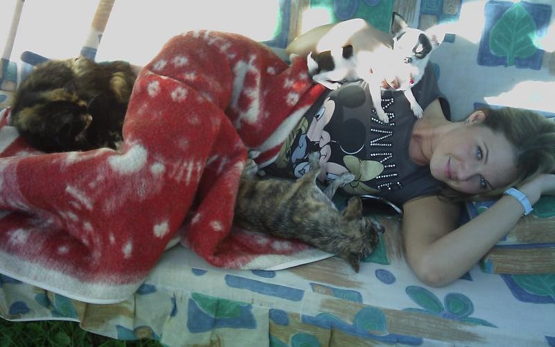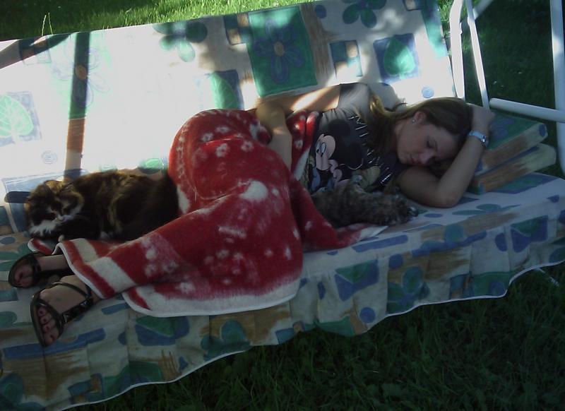 Еще я спала на качелях в окружении кошки, Джесс и Бони)полный зверинец)))