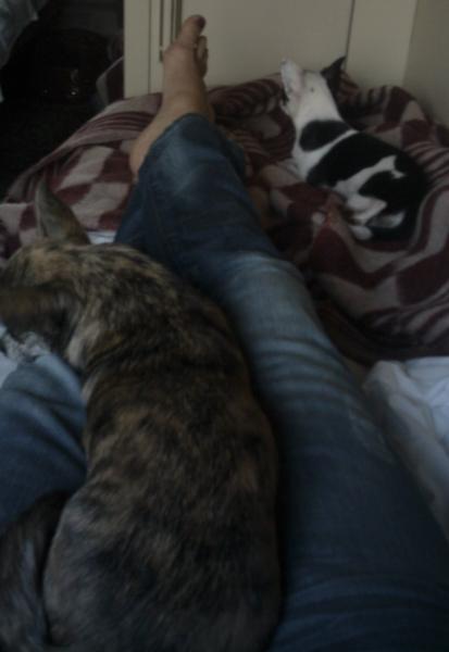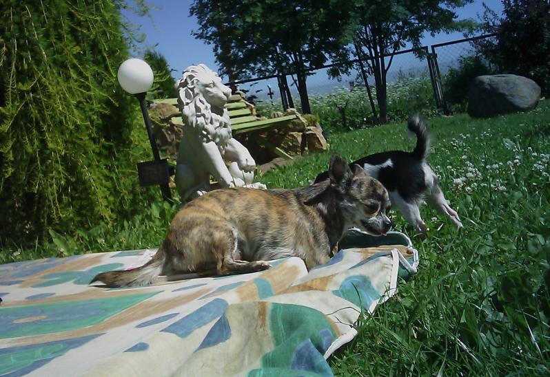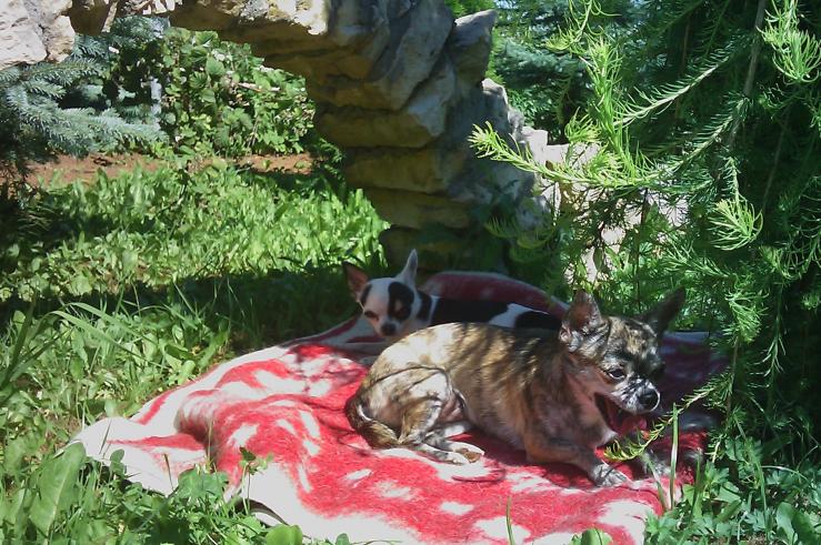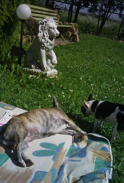 Девочки так загорели))) У Джессики пузо было розовое - а стало темно-коричневое! А у Бони в пятнышко))) Когда брали справку у врача - не могли найти клеймо у Джесс - слилось с загаром)) :laughing: