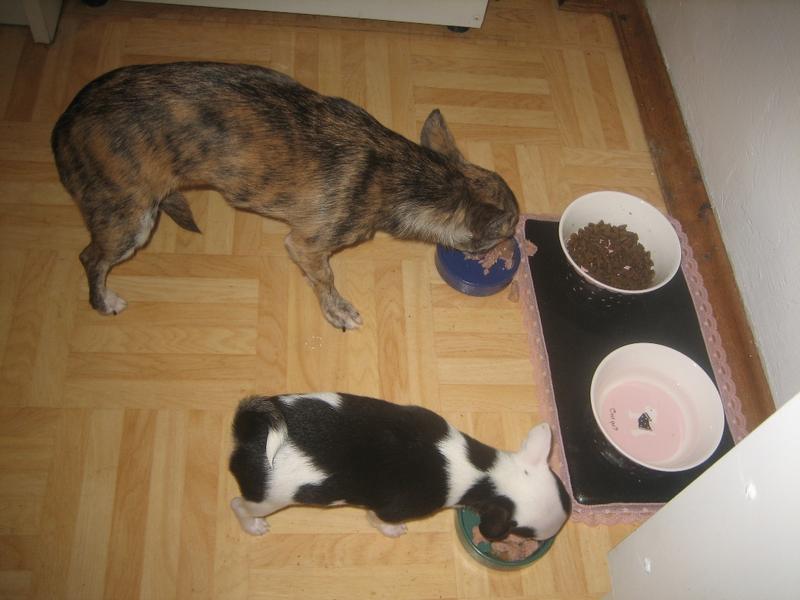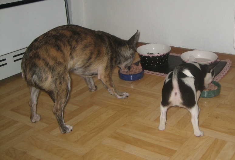 А вот так мои девочки уплетают консервы!!! :dancers: Заметьте - как они совершенно по-разному при этом держат хвосты! (Джесс стесняется - у нее првая течка) :tearsofjoy: