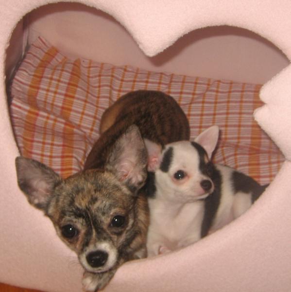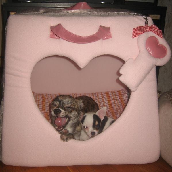 Бонита уже подросла - стала прохожа на собачку уже (раньше - на морскую свинку маленькую), гоняет Джесс по всей квартире, да с таким рычанием!!! Джессика прячется от нее на диване! Ночью дружно спят в домике или лежанке, мы спим в спальне - их не пускаем. Перед сном девочки тщательно друг друга вылизывают))) Утром уже сидят у двери в спальню - встречают нас!