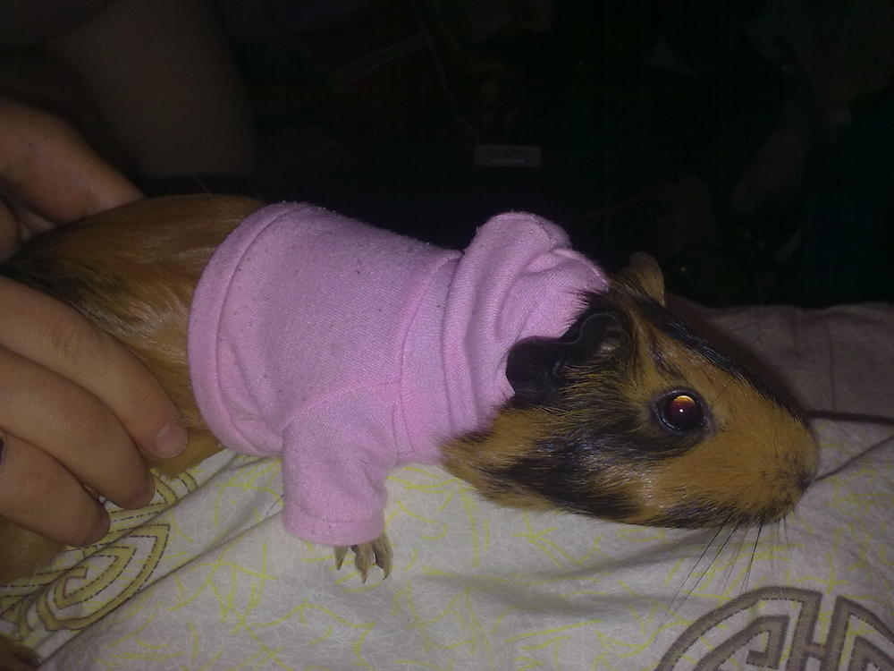 А здесь размещаю фотки гламурной морской свинки по имени " Сырник" моей дочери. Так для поднятия настроения , не только наши малыши ходят нарядные:wink:
