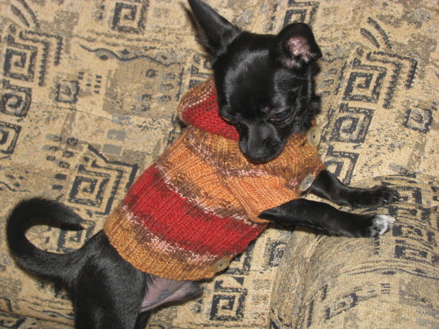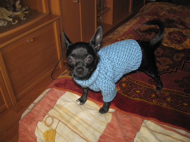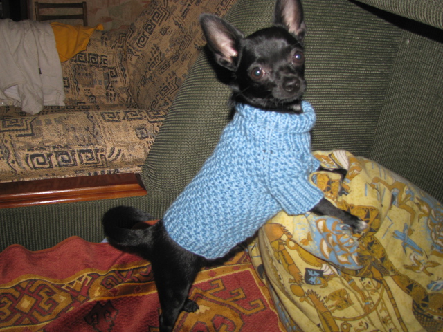 Мы гладкошерстные, поэтому, когда холодает на улице, одежка все-таки нужна. Решила попробовать связать что-нибудь, вот результаты.