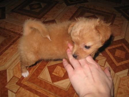 зовут нас Сэмми,ему тут 7 недель,но мне кажется что он у меня сильно крупный!здесь он весит 1кг ,и ушки наши не хотят вставать!