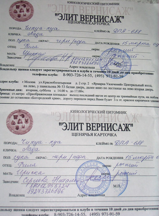 Документы есть, но не РКФ, я сфоткаю, вечером выложу. Ушко одно у нее вставало, а второе нижний хрящик ну вообще ни как.Сейчас подклеила и специальные витамины даю. Вы знаете у меня лет 8 назат был той, покупала тоже 2вух месячным и такого же цвета, к 10ти месяцам пришлось его отдать, очень нервная собака была. Неодыкватная, гадил на кровать, постоянно орал,дрожал. Да мордочка чем то похожа, но мне все же кажется, что это чихуа, у нее немного круглее голова,даже родничек еще не зарос, просто есть чихи у которых круглая голова,очень и скосом прям носик идет, ну у нас чуточку подлиннее(может я себя успакаиваю). Кстати я видела помесь тоя с пинчером, в маленьком возрасте вообще не определить, а вот чихуа с пинчером не видела. А больше всего меня удивило, в парке у нас ходит, такого же цвета как у нас, голова чихи, а тело таксы, лично я просто офигела, и очень боюсь такого же. Причем тетенька эта ,покупала на выставке за бешанные деньги. Вот так вот.