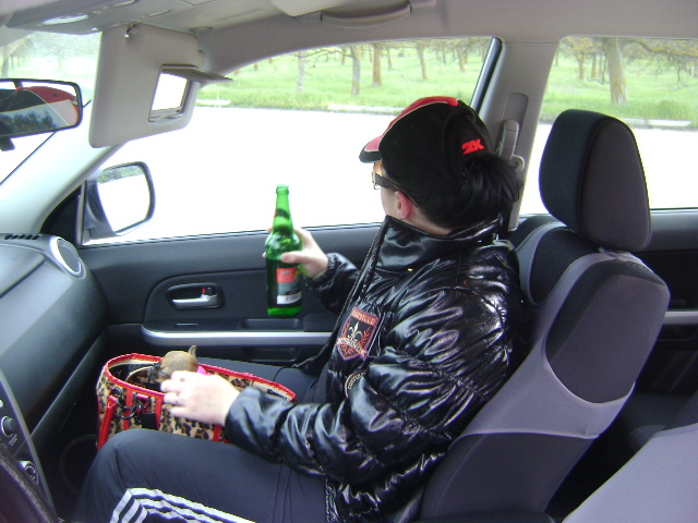 А у нас все хорошо в машине,дрыхнем в сумке или у меня на руках!Сама одна за рулем и с Лилу в салоне не ездила,думаю она будет лезть ко мне на руки и мешать-нужно попробывать проехаться по месту:wink: А я с Лилу на правой чашке выглядит примерно вот так:tearsofjoy: