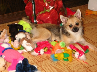 Ответ: Моя Баунти!!! Вот и новые фотографии моей девочки) Она уже совсем к нам привыкла и мы иногда ее балуем!) Куча игрушек!!И все ее))))