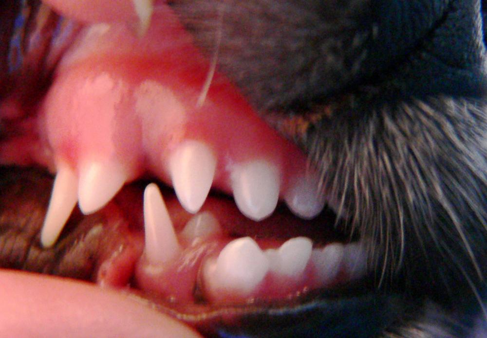 И посмотрите на молочные клыки, шатаются ли они, можно попробовать их расшатать и вытащить,