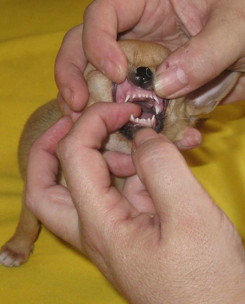 У меня такой вопрос - если у собачки сейчас зубы 5х4, то может такое быть, что при смене у нее потом вылезут все положенные? И как судьи относятся на ринге к таким неполнозубым собачкам?