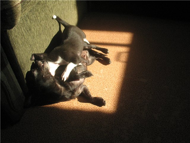 Как мило и осторожно они играют!!! Лапусендрики! Обожаю Вашу Еджину и хочу щеночка именно от нее!:clapping: