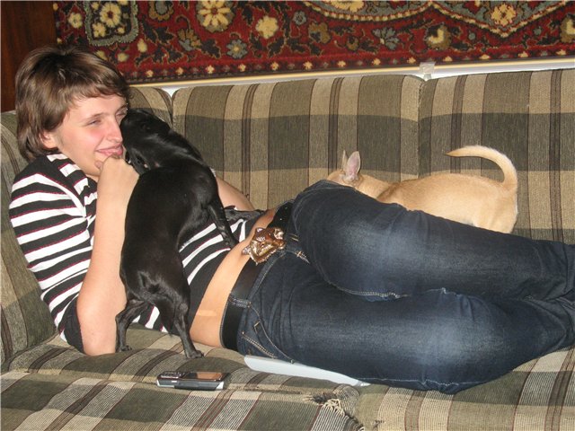 Татьяна,я вот тут подумываю приобрести щенка в подруги моей Мулюде и очень нам теперь нравится окрас вашего Моти...Конечно "папа" у нас против новых живых существ в доме, кроме собственных детей, но мы с моей мамой одержимы идеей о новой масюсечке....И еще я думаю, если нашу Мульку свести с таким окрасом как у вас, есть такая возможность что щенки будут пятнистого окраса( муля у нас по родословной рыжая,но на самом деле больше светленькая) или окрас сводится с окрасом точь в точь..?????