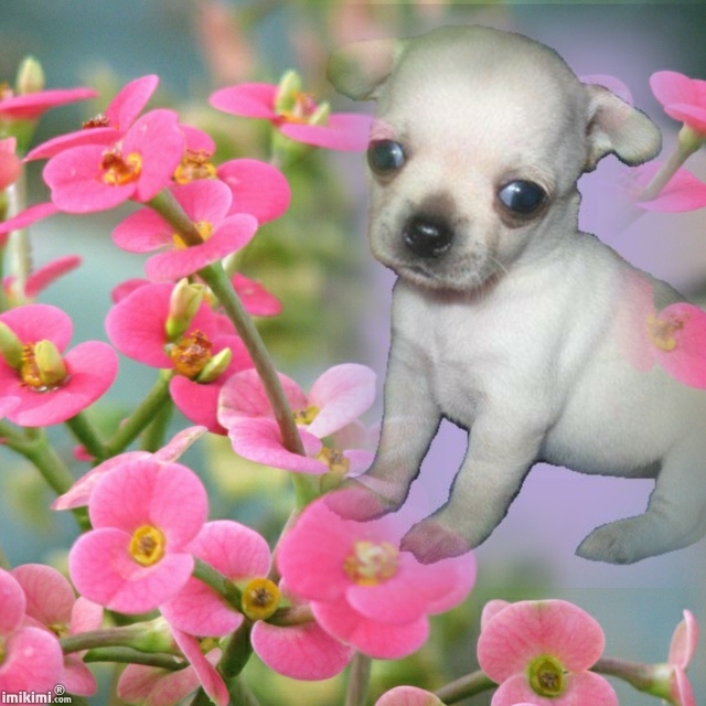 Не понимаю я такого обилия фотошопа. Щенков плохо видно становится. И яркие цветы отвлекают непосредственно от щенка, который по идее должен являться главным на этом рисунке, а значит - выделяться.