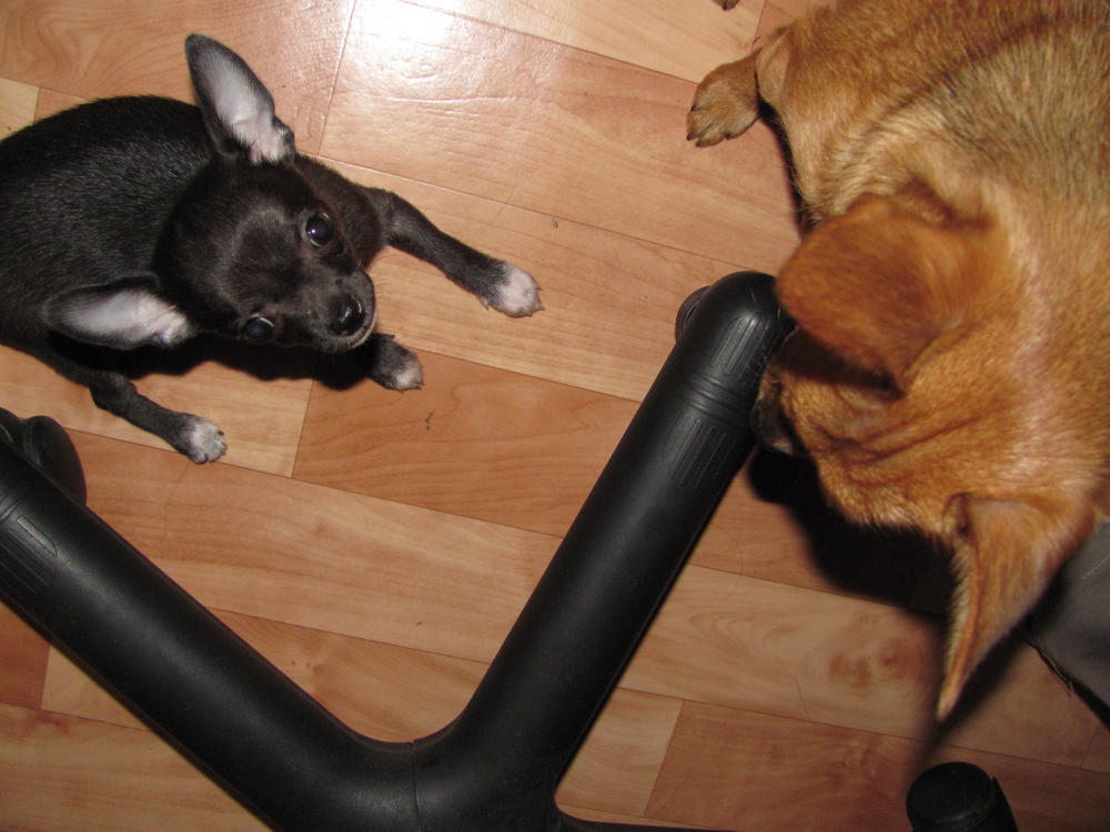 2. фото - Рич пристает к Чиже играть, а тот спрятался мне под кресло)))) Рич и там его нашел, и так и сяк звал играть.... а тот никак....