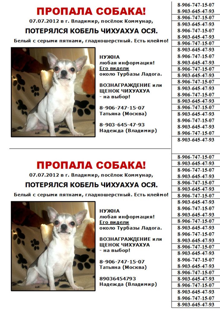 закинула на клавс, и в жж (только непоняла как там найти сообщество потеряных животных, подскажите в личке)