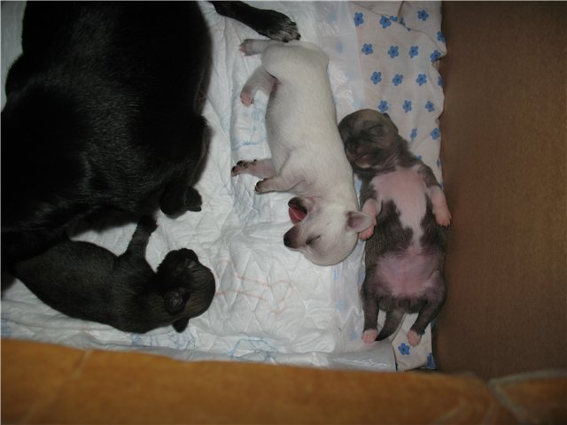 Такие хорошенькие маленькие собачата! А больше всего нравится щенок, который с наетым животиком лежит на спинке!