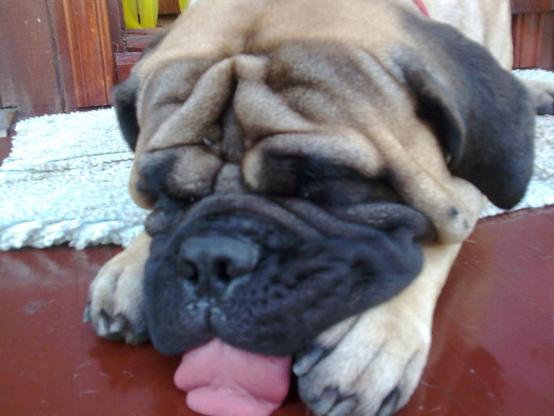 Наша сестричка - "злобный" бульмастиф.По характеру наш чих настоящий сторож, а бульчик считает себя маленькой диваной собачкой.