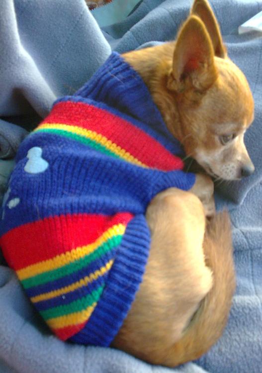 Ой, у меня так Сонча улиточкой сворачивается - трогательные они такиекогда так спят:smile:, а Лизка (старшая) так не сможет - мешает отъетое пузцо. Очень свитерок Шурику идёт, и видимо ему в нём удобно - носит не снимая:smile: