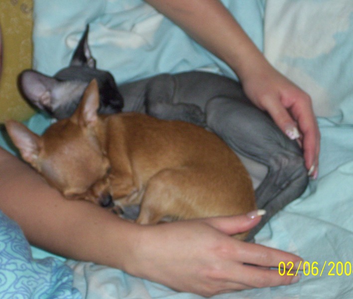 Такая прелесть у вас собачка и конечно же ваш котик Сфинкс!!!!А как они друг с другом ладят!!!!!!Мы вот тоже своему хотели купить такую будочку, но не знаем будет он там спать или нет.