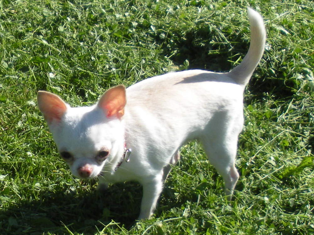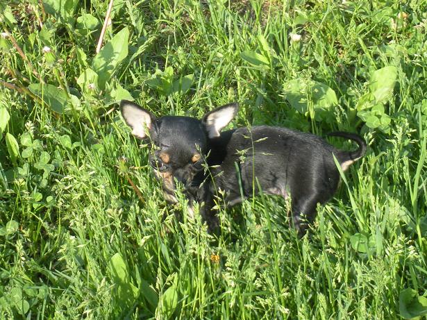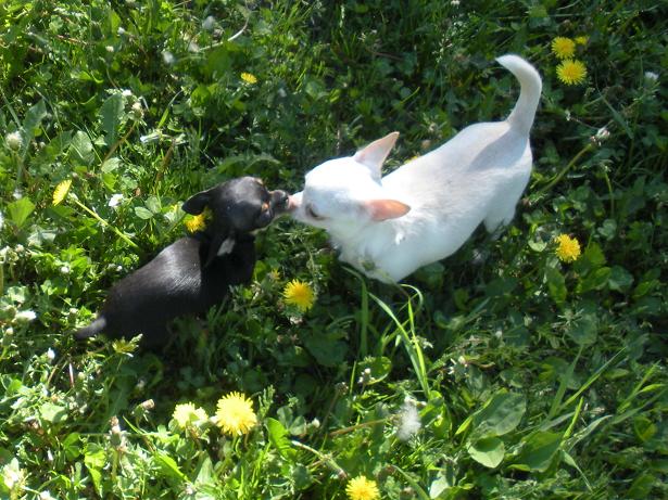Шишка любит знакомиться с другими собачками, в независимости от размера, хотя и боиться)) Подбежал к нам пекинесик на прошлой неделе, моя сразу сжалась как креветочка и ... бух на спину лапками к верху я обалдела!! Мол, я добрая, маленькая собачка, никого не трону, очень безобидная, сама всех боюсь ! Пекинес по-моему ничо не понял)))))))))))))
