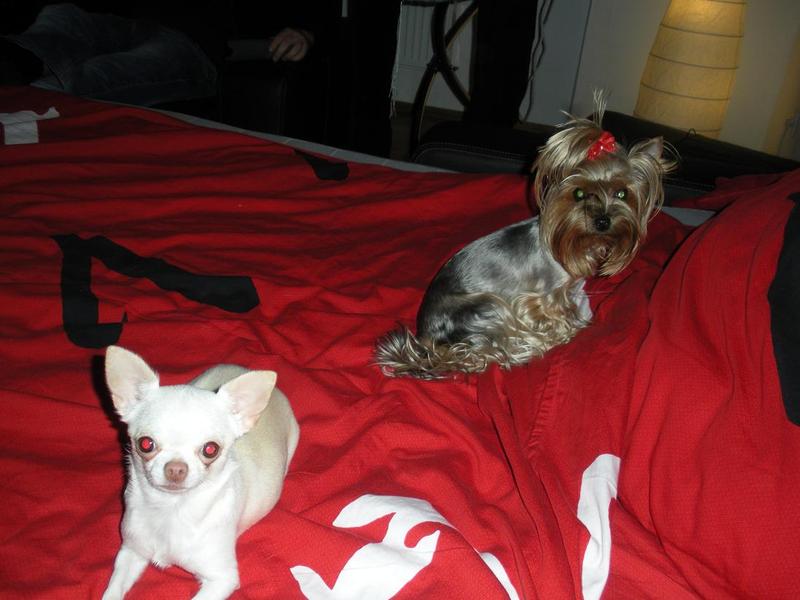 А мы все новогодние праздники провели с подружками йорками! Наша среди них была самая маленькая, сначала боялись, что они ее задавят, будут обижать. Оказалось, что наша малявка сама всех построила, заиграла даже самую серьезную)))!!