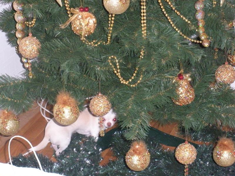 и еще не много новогодних фоток: "прячим вкусняшки под елкой", и "почему мне не завязывают бантики"