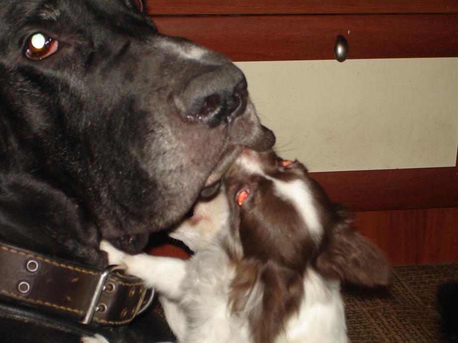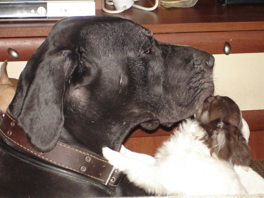 Супер, приятно... Есть о чем поговорить, кроме наших маленьких. Я предпочитаю в догах только Европу, особенно Францию и Бельгию (губы, рост, костяк, мощь). Там совсем другая картина и другие ринги. Мне очень нравиться гулять с догом и чихом по улице, особенно вдоль дороги. Машины едут оооочень медленно, из окон фотоаппараты. Черный дог у меня очень высокий и ярко рыжая чиха. И у всех вопрос- ОН ЕЕ НЕ РАЗДАВИТ???.