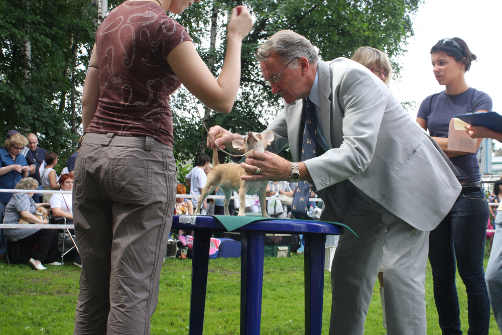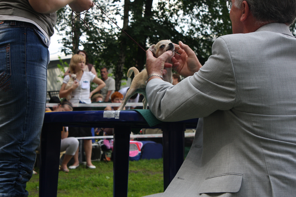 Со всеми очень ласково разговаривал, а уж простите, если собачка истерик или не подготовлена к показу в ринге, то это мы с вами виноваты, а не эксперт.