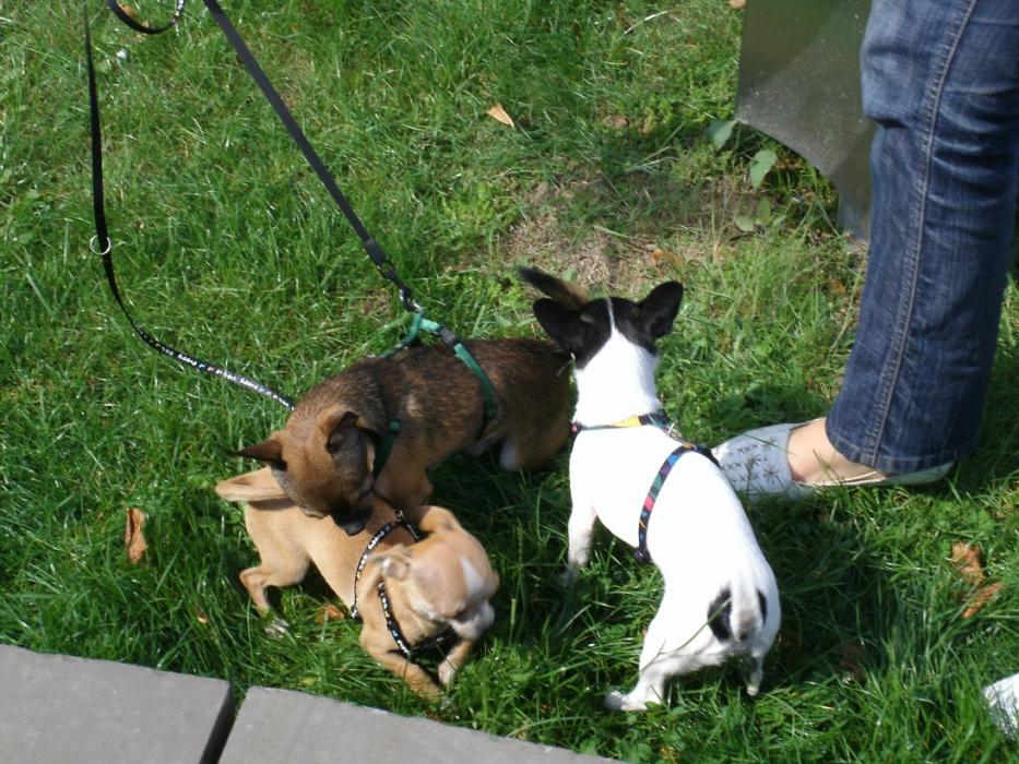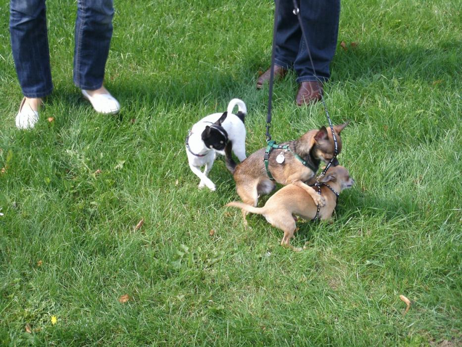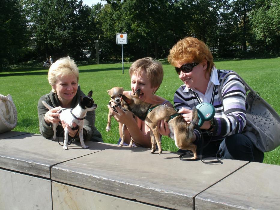 Сегодня погода нас побаловала солнышком :gold:и мы решили встретится в японском парке и погулять вместе с Олей и Цезарем и их друзьями : Леной и Гришей... Вот что получилось из этой прогулки....Ник как сумашедший носился с высунутым языком за Цезаренком, абсолютно игнорируя Гришу и визжал не переставая ( боялись даже с поводка спустить...а вдруг что Цезаренышу сделает:sm555:т)