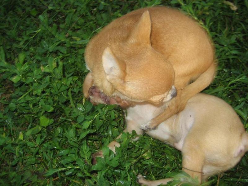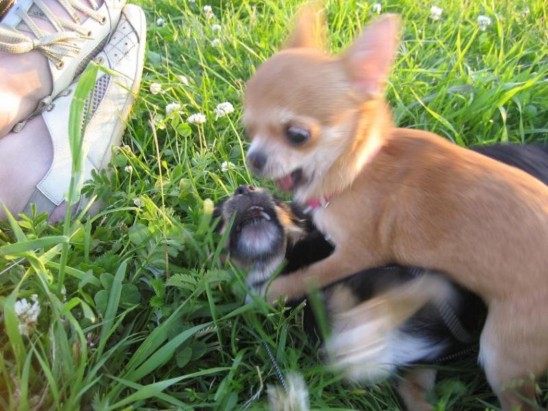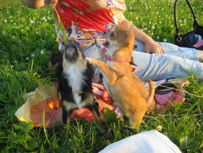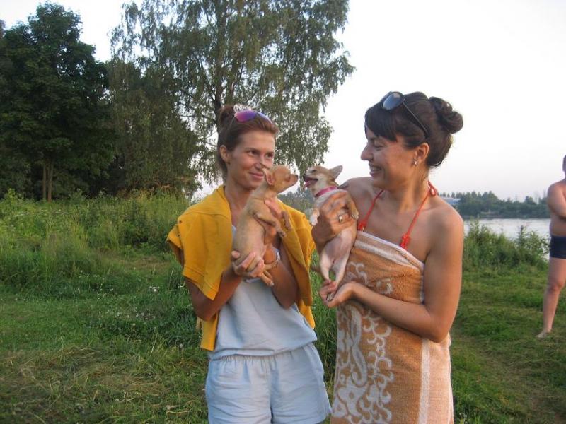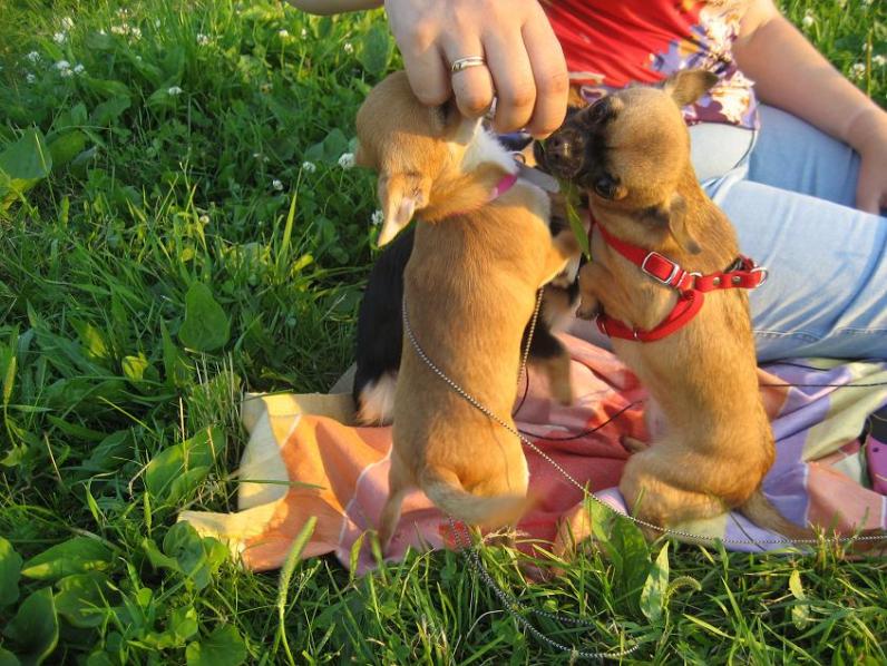 Девочки, а еще у нас случилась очень радостное событие - Жозька наконец-то встретила малыша в своей весовой категории, с которым можно было бесится и кусаться. Зовут этого малыша Якудза или просто Яшка, ему 3 месяца и весит он 1 кг. Но встреча эта была недолгой, т.к. произошла далеко от дома на берегу реки, куда мы ездили купаться. Но за то сколько радости и позитива!!!! А теперь фотки - называются: Найдите 5 отличий )))))