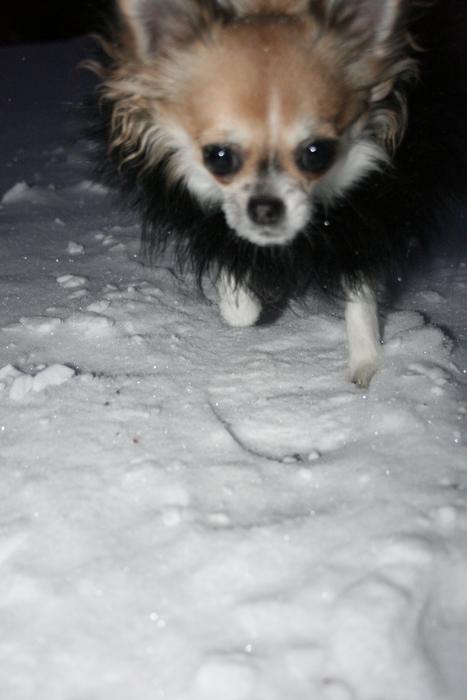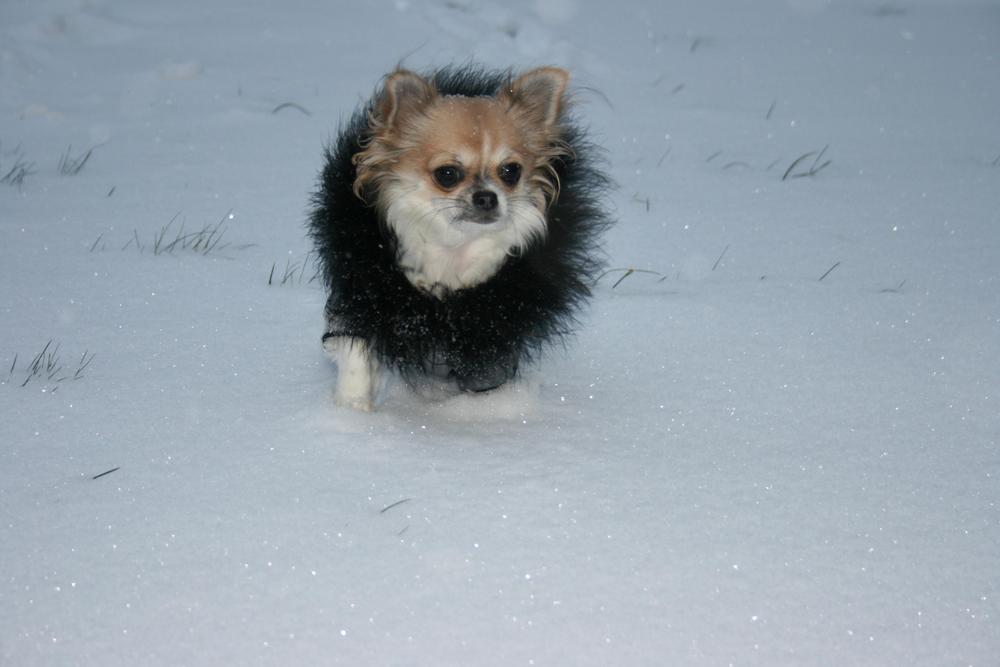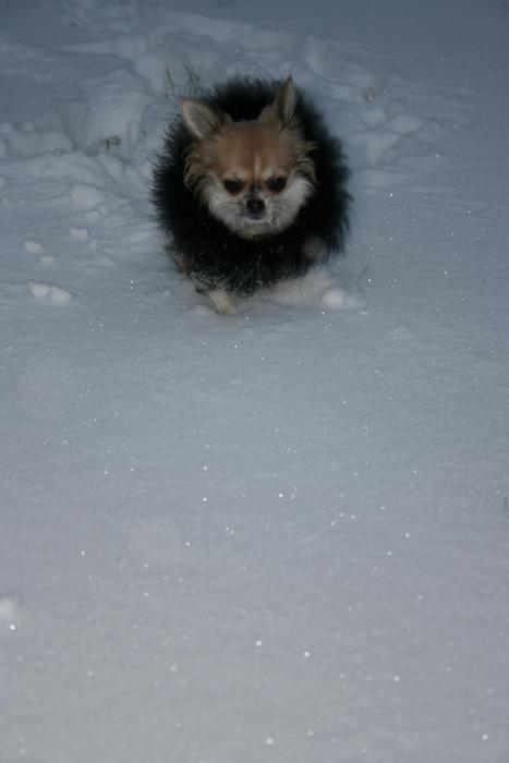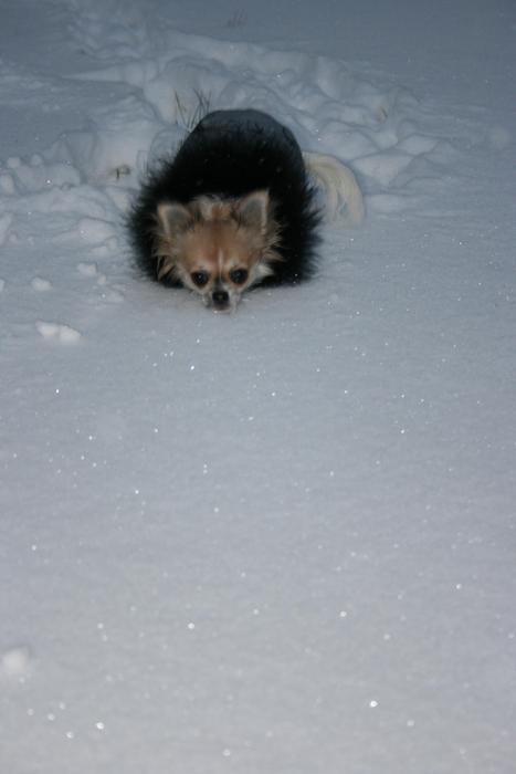 не скажу что ей понравилось, мерзлячка она! По сугробам погоняла немного, а потом скулить стала, на руки проситься :holod: