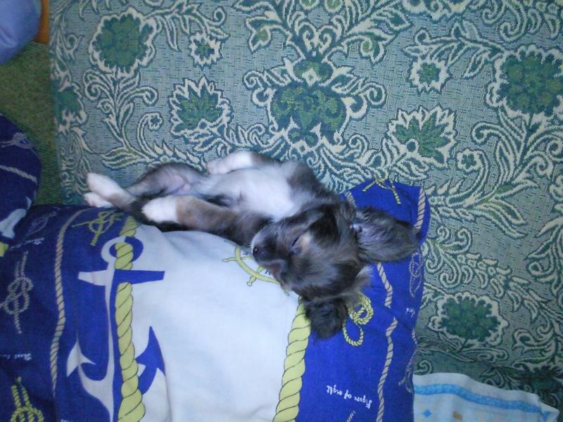 Следующий меся прошёл в бессонных ночах и отчаянии. Пёса оказалась очень мала- всего 1 мес и 1 неделя. Блохи били самой маленькой бедой, с которой мы справились за два приёма. Но уже на второй день стала чахнуть- не ела , не пила, всё время лежала. Я понеслась по ветеринарам. Но их советы и диагнозы оказались настолько разнообразные, что девочку пришлось бы просто заколоть, а главное никакого толку:cry:Глюкоза и витамины, Забыла про сон и отдых, всё время висела над ней. Начались судороги, беспрерывный массаж, кормление через шприц, постоянный контроль за состоянием. Последний врач меня просто добил, поставив диагноз- неправильно расположенные орган, нужно усыплять. Дал один день на размышление.Слёзы не просыхали, когда ехала домой. А дома муж приступил к отчаянным действиям, мол если не поможет, то и хуже уже не будет. Развёл водку в чайной ложке с водой и мёдом и , всё через тот-же шприц, залил маленькой.:cry:Через пол часа она уже просила есть, ещё через час -пошла, и с тех пор мы забыли про болезнь, по сей день нас не беспокоят " не правильно расположенные органы":question::smile: