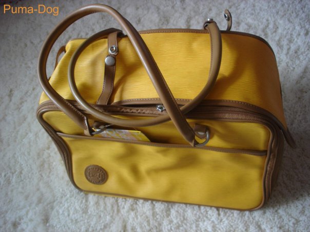 А у нас вот такая сумка. Покупали у Ольги =) Очень удобная, в ней два кармашка для хозяйки - снаружи и внутри, на кнопках. Открывается она сверху и сбоку. Собик может высовывать голову. Плюс в комплекте был кошелечек, я туда корм насыпаю =)
