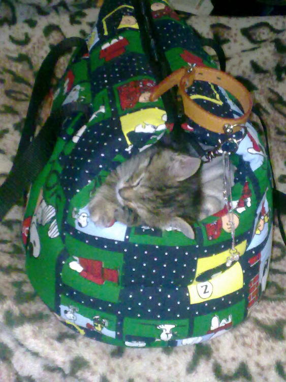 Я приобрела вот такую переноску для щенка , но войдет и взрослая собачка . Она на поролоне ,внутри карабин с небольшим ремешком фиксирует собаньку чтобы не выпрыгнула . Самое главное из плотного хлопка и без запаха . Моя каралевишна в другую не за что не хотела лезть . От синтетики был ужасный запах! Так что у кого у собачек есть алергия - это то ,что нужно.Там спит не только щенок , но и котенок часто туда забирается вздремнуть. Самое главное можно стирать в машинке.:loves:
