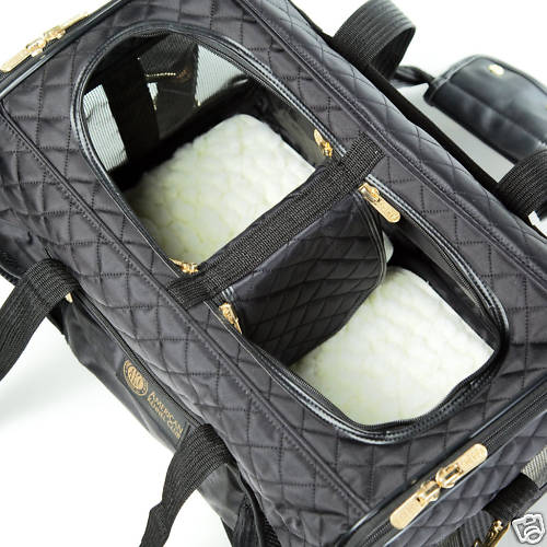 У меня две девЧишки , обе мелкий стандарт . Удобная сумка , в которой собакам комфортно - моя мечта . Пока нашла только такую ... Размер 43-25,5-28см По бокам маленькие , но вместительные кармашки на молнии ( вет паспорт , салфетки , рулетка помещаются ) Внутри матрасик , который прочно удерживаю липучки , и карабин Сумку очень удобно нести на плече ... А еще , пользовалась переноской в поездке ( путешествовали с одной собакой на поезде ) , осталась довольна .