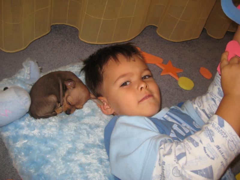 ...И рассказать какая Линочка была маленькая обжора. Когда я привезла её от заводчика, она была похожа на колобка, такая же кругленькая.Но не смотря на это, есть хотела постоянно, и всё что угодно.Во время еды она вставала на передние лапки и так на них и ела, а задние поднимала примерно на 3 см. от пола(я не шучу, действительно так ела).:flushed:Всё до чего она добиралась исчезало в считанные секунды, и это помимо пяти разового кормления(по 2 ст. ложки)!Как то раз муж резал репчатый лук и уронил кусочек , а Лина его схомячила... и пришла ко мне целоваться, я была в шоке, ни разу не слышала чтобы собаки ели сырой лук.Ещё когда я подошла с ней на руках к барной стойке, на которой стояла чашка с кабачковой икрой, Лина изобразила прыжок пантеры и умудрилась попробовать её, пока я растерялась. Прошу заметить, что это происходило после еды, да и глистогонили мы её регулярно.Историй Линкиного обжорства у нас хоть отбавляй! И только через пару месяцев жизни у нас она перестала так жадно набрасываться на еду, а сейчас вобще стала ужасной привередой!:wink: