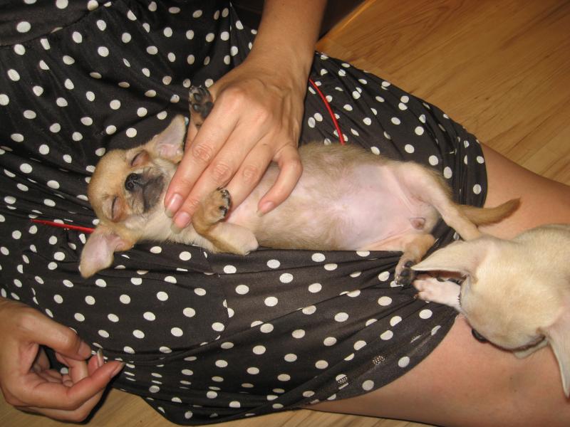 А это не могла не выложить! Это девулька моей дочки, настолько нежное создание, что просто млеешь рядом с ней! Она как пластилиновая, как положишь так и лежит! Обожает когда чухают животик! Дочка попросила подержать малышку у нас пока она со своим малышом разберётся, поэтому у меня сейчас по квартире скачет ТРИ чихушки!
