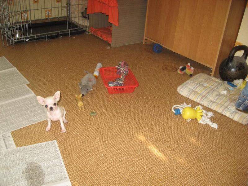 Гири и старый маленький матрасик на полу в углу тоже не просто так - это заставляем места где накекали куда неположенно. 90% ходят на газеты и в лоток, но иногда вот могут и куда-то в другое место "отложить личинку". Из комнаты в квартиру выпускаем только убедившись, что сделали свои "великие" и "малые" дела там где им отведенно. Вобщем пытаемся приучить к порядку.