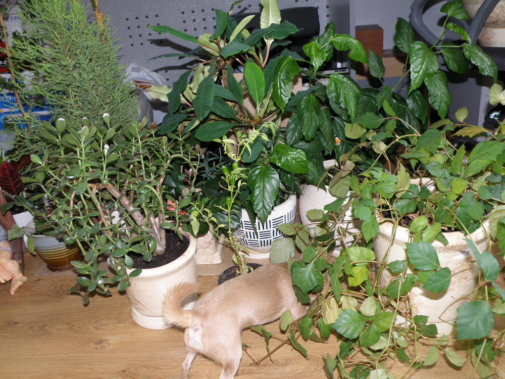 Сегодня решила помыть окна и балкон, выкупала цветы, а пока они на полу сохли ,Тимоша играл в охотничью собаку, прятал в зарослях свою свинку, долго ее искал ,а когда наконец находил, яростно трепал ее на моих глазах.