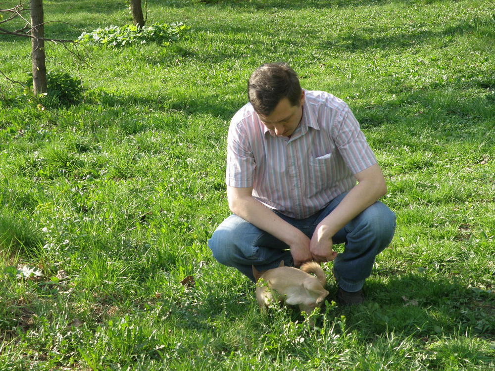 Я так и делала сегодня-удерживала его, а тои с ним "знакомились"-бесполезно! А на Сашку он на улице не расчитывает-они вместе не бегают-они же без поводка! Выходят и бегут каждый в свою сторону, по своему делу и иногда пересекаются! Сашка дальше отбегает,а Патик недалеко от меня ногу тусует! а больших собак облаивает издалека!