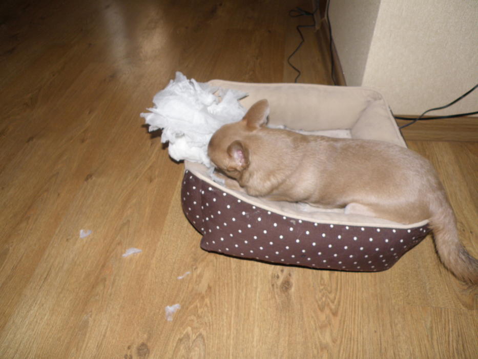 Я убирала коробки с обувью,а Тимоха воровал бумагу из ботинок ,утаскивал к себе на лежанку и с упоением раздирал ее.